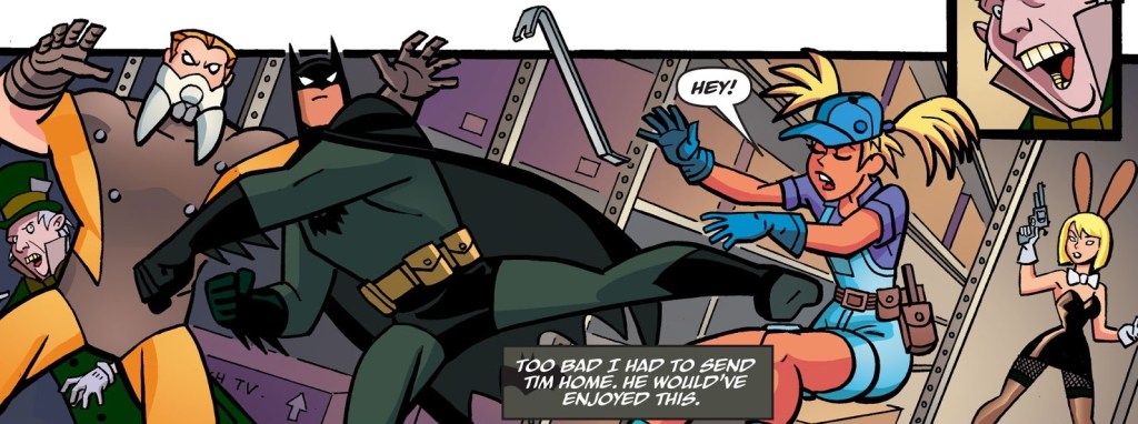 Look, it’s not Batman without some colourful bad guys with a very specific gimmick. Initially we thought Mad Hatter would be a good candidate, but instead went the whole damn gang. Hatter leads the themed group, mind-controlling people with headwear, and gets the most pages of the comics, but there’s no reason not to include Walrus, The Carpenter, the Tweedles and March Harriott for some extra weirdness. Maybe just a prologue scene to highlight the criminal world’s reaction to Batman’s antics, and good way to set the tone for more extreme characters.