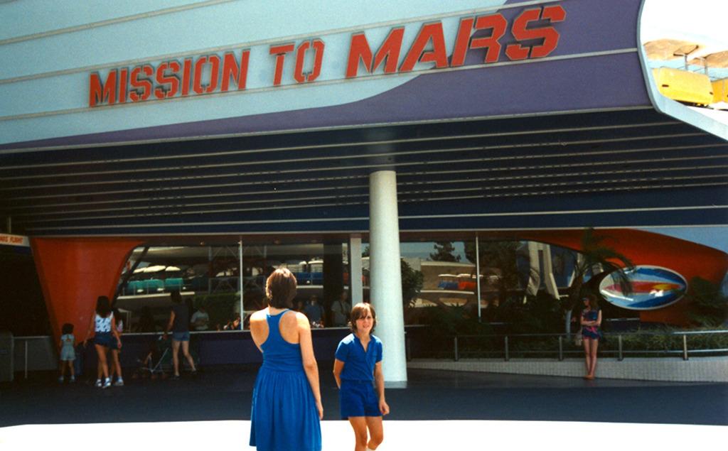 The Ride: Have you ever heard of…The Tomorrowland Problem? No? Well, the purpose of the land is to show you the future. The problem is that the future keeps turning up and the predictions of former generations are a little quaint. Take, for example, the 1955 ride Rocket to the Moon. Less than two decades later this was no longer a flight of fancy, but a scientifically inaccurate prediction less impressive than the real thing. So they shift the goalposts and refurbish it as Mission to Mars. An early model simulator ride, the visitors would be briefed on their mission by an animatronic mission control guy before entering the ‘rocket’ and sitting in an amphitheatre arrangement.