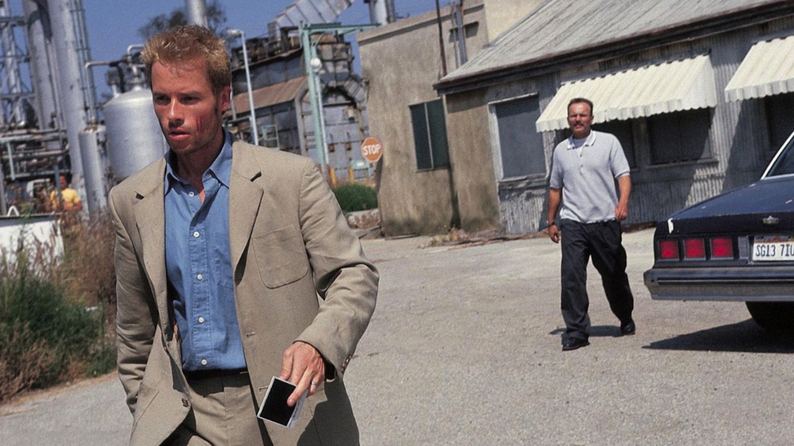 Since the attack on him and his wife, the incident that put this story in motion, Leonard hasn’t been able to form new memories. As such, every scene begins with Leonard unsure of how he came to be where he is or what he was doing there. To reflect this, the scenes are presented in reverse order leaving us just as unclear to the situation as Leonard, with the next scene providing us with those answers. It may feel counter-intuitive to begin a mystery with the final scene, but the truth proves to be more than a little subjective and the real question comes down to knowing who is playing who and why. The truth is that it’s the biggest and most shocking twist comes from the most inconspicuous part of the tale.