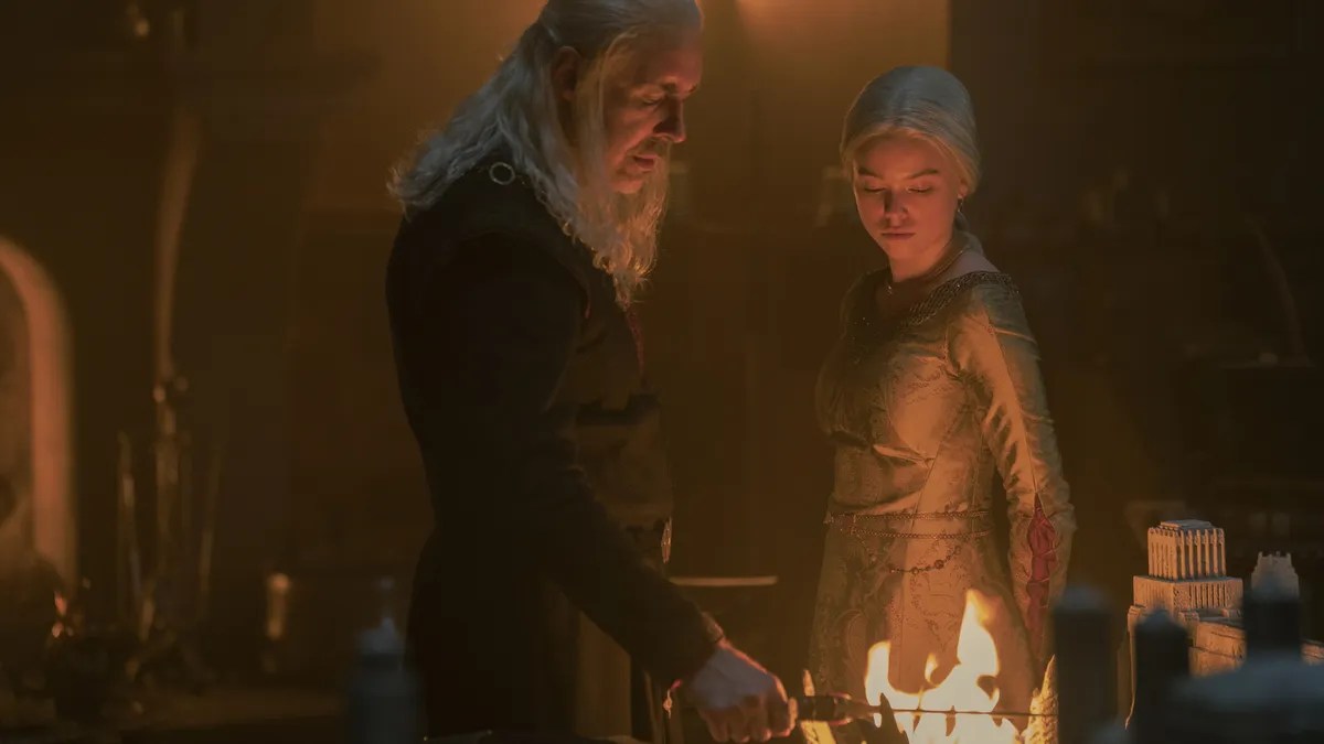 In an interesting development, Mysaria has stopped being a whore and has involved herself in a much more profitable business—selling secrets. She’s now known as the White Worm and is the de facto Varys of this show, complete with her own “little birds.” To the astonishment of no one, she sells the knowledge of Rhaenyra and Daemon’s actions to Otto Hightower.