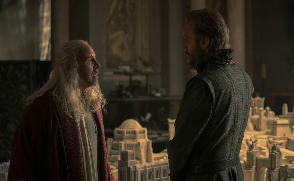 Sometimes I feel like this entire series is about having uncomfortable conversations, and I mean that in the best way possible. Otto and Viserys’ (final?) confrontation is without a doubt one of the best scenes so far this year. Viserys talks about how his father Baelon was dead of a burst belly five days after he was named Hand of the King, which turned out to be a “great day” for Otto. Otto is really taken aback by this and the implication by Viserys that Baelon’s death was something he celebrated—it almost offends Otto. Maybe I’m nuts but it felt that there was a weird subtext that maybe Otto had something to do with Baelon’s death? I’m probably reaching. In any case, it is a complex and nuanced scene because Viserys is very respectful of the role Otto has played saying the crown owes him a debt it can never repay and that Otto “taught him” how to be a king. However, he now recognizes that Otto sending Alicent to comfort him in his grief was a calculated decision and that Otto’s own self-interest means he’s been compromised. Viserys can no longer trust Otto’s council and strips him of the office of Hand.