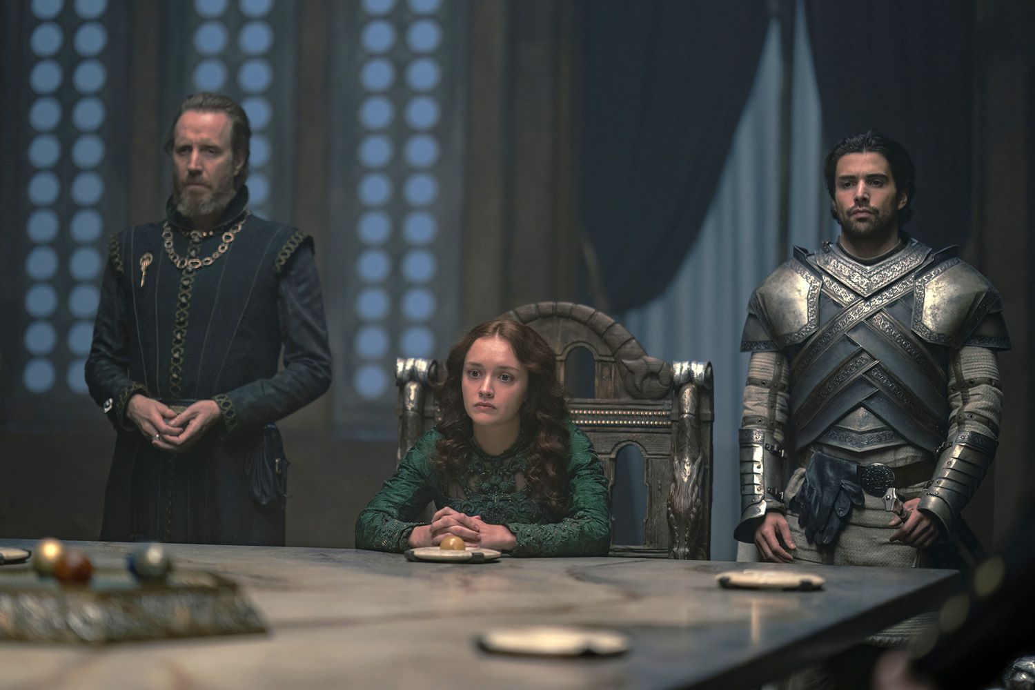 Alicent wastes no time in telling Otto that Viserys’ final wish was for Aegon to be king. Otto convenes the Small Council immediately and informs them adding that Viserys “left us a gift” by telling Alicent he wished Aegon to ascend the throne. It is in the next moments that the depth of Otto and the Small Council’s scheming comes into the light as they reveal that they’ve been preparing for this day—behind Alicent’s back no less—for years. They NEVER intended Rhaenyra to ascend the throne and had been plotting all along, much to the chagrin of Alicent. The look on her face is priceless and credit where it’s due, Olivia Cooke’s performance continues to get better with each week. What she’s able to convey in her face whether it is desperation or scorn is simply amazing.