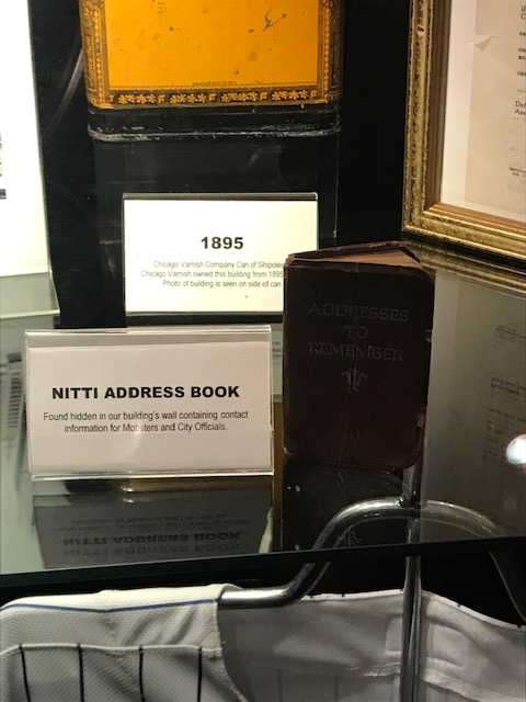 The final stop on our tour was perhaps the coolest. On the surface it was a restaurant named for its founder, and famed Chicago Cubs announcer, Harry Caray. But following the death of Al Capone his successor Frank “The Enforcer” Nitti took over the gang and set up his headquarters in what is now this Italian steakhouse. Upon doing the necessary remodeling work to convert a gangster’s hideout into a restaurant they discovered a treasure trove of Nitti’s goods. In a move that makes history buffs like me incredibly grateful, they did not throw anything out, rather they used a small section of the basement as a small crime museum. Though the coolest discovery is not in this museum, but rather right there by the front door of Harry Caray’s for all to see. It is a small notebook where the Enforcer kept record of every gunsel, lawyer, cop, judge, government official etc. who were on the take from him.