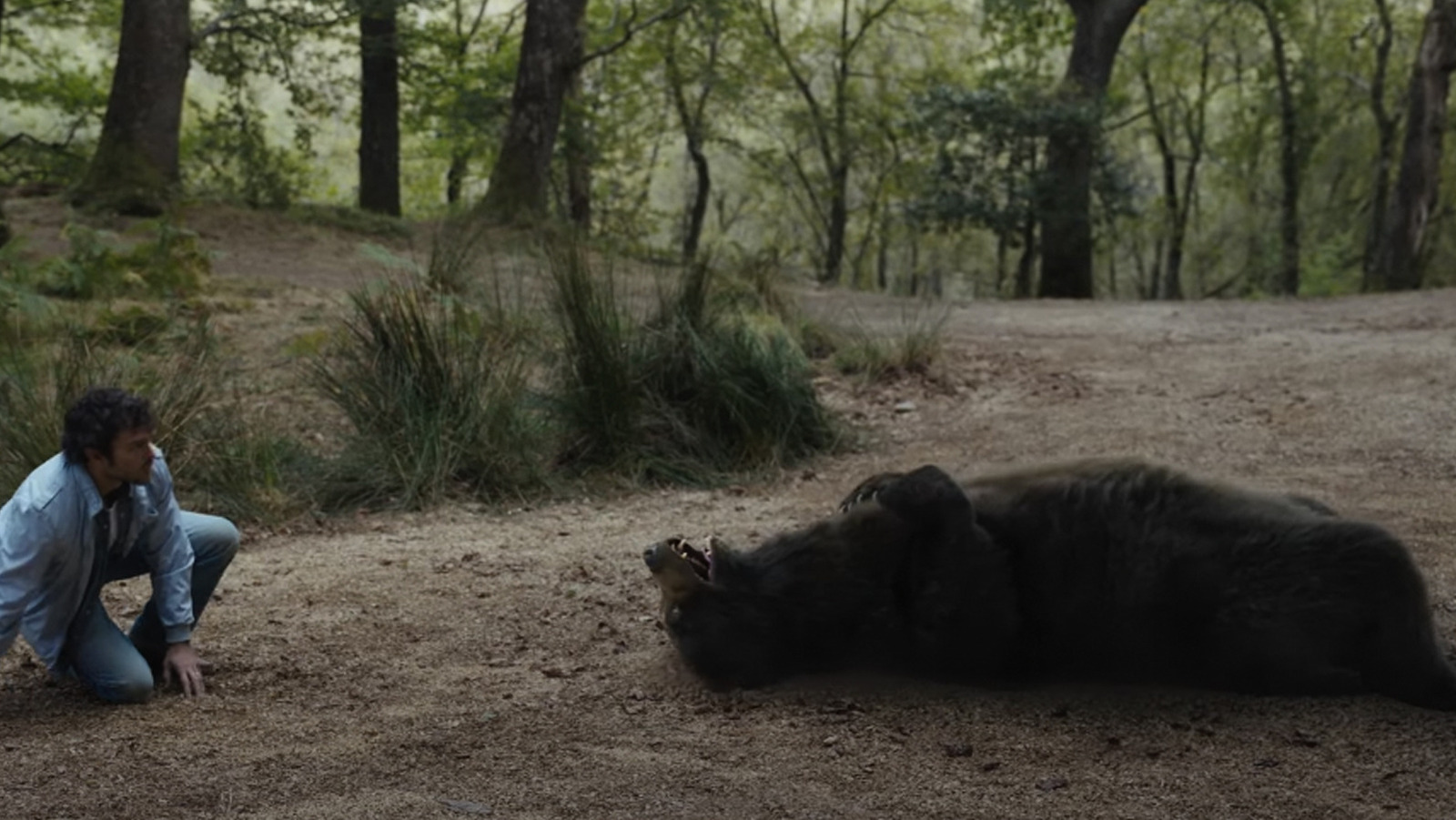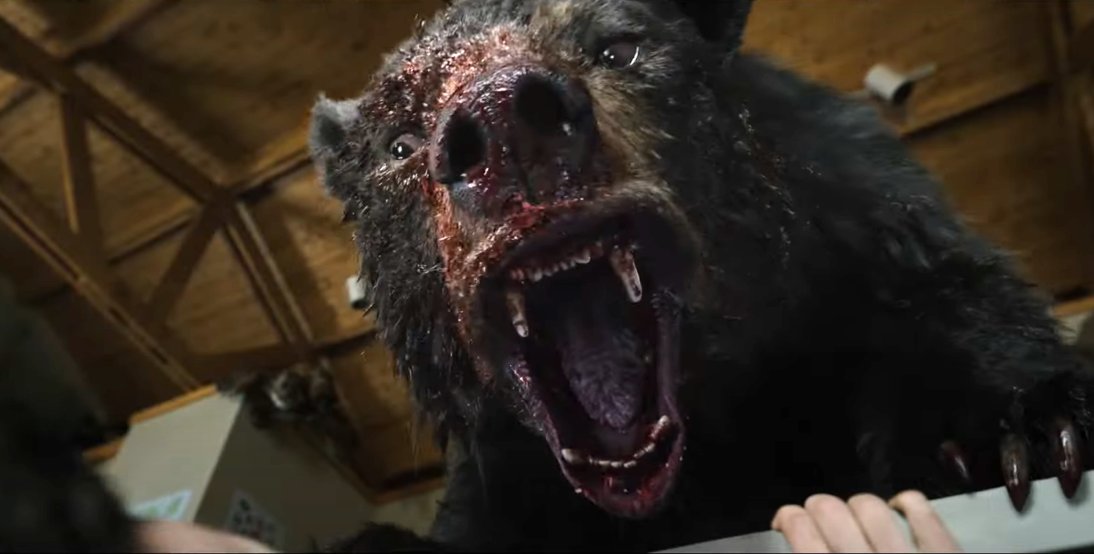 The next scene of the movie introduces a couple of throw away tourist characters who are the first to fall victim to the titular Cocaine Bear. We get a real good look at the bear at it dances around, head-butts a tree and then chases them for an attack. Half an hour later, we get out next bear attack scene, but this time the bear is hidden or behind bushes as it grabs people and pulls them off-screen. This is how you structure your scene if the monster hasn’t been seen by the audience yet, and you want to build up the anticipation to a big reveal. But it doesn’t make sense if WE’VE ALREADY SEEN THE MONSTER. We have seen it TWICE at this point, and yet Banks treats this like we’re building up to a first appearance.