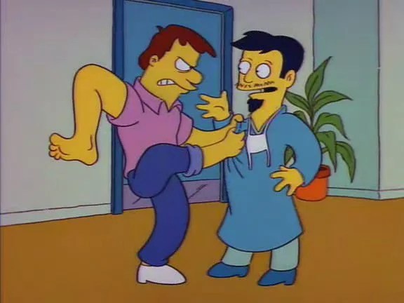 Mr. McGreg (Homer’s Triple Bypass): Dr. Nick Riviera may always have a warm greeting for everybody, but that does not mean he is competent at his job. This is abundantly clear when we meet one of his former patients, Mr. McGreg with a leg for an arm and an arm for a leg. Undoubtedly the product of Dr. Nick’s handiwork he has no problem taking his anger out on the Hollywood Medical School Graduate.