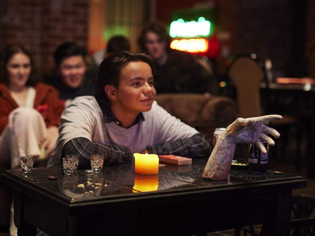 Mia (Wilde) has been traumatised by her mother’s recent death, and she’s been struggling to be alone. She relies on her best friend Jade (Jensen) and her family, with whom she spends most of her time. Younger brother Riley (Bird) and their mother Sue (Otto) have unofficially adopted her, and Mia very much provides an older sibling role to Riley. At the party they meet Hayley and Joss (Terakes and Alosio) who have obtained a ceramic hand that allows people to connect with the spirit world. Initially only Mia indulges, enjoying the experience in spite of the terrifying reactions she exhibited during the brief possession. Before long everyone is taking a turn, with the group increasingly pushing against the limitations imposed on them by the hands previous owner.