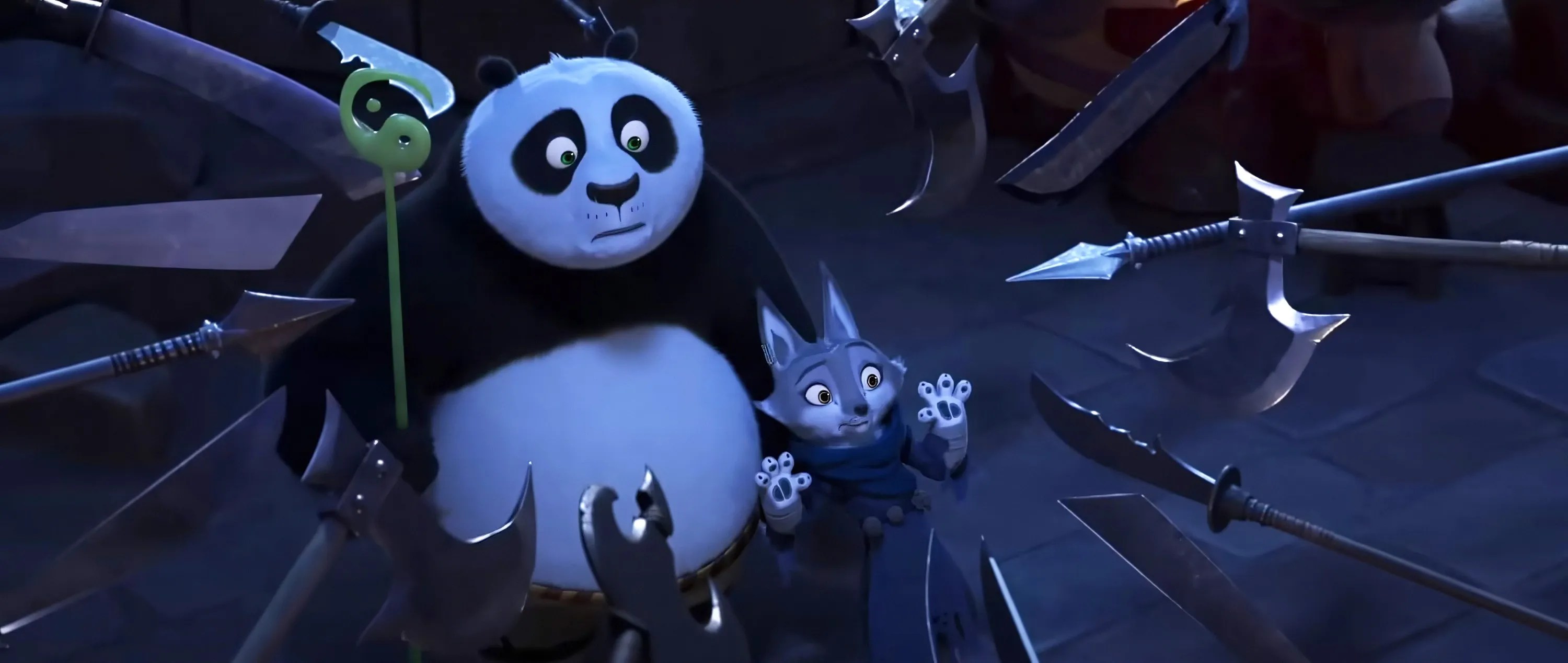 Oh, and there’s a whole storyline about Ping and Li following Po and Zhen because they’re worried about him not needing them. This whole plot could be dropped, it only repeats a character beat we covered in the past movie. When you’ve already got seven past characters turning up and not saying anything you have to wonder if this was the best use of time.